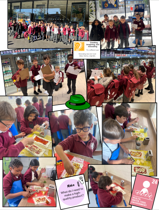 Year 3 visited the local supermarket this week to buy the ingredients needed to make their savoury tarts in DT. We also completed a range of activities around the shop using our Science, Maths and English skills! The next day, we visited the food technology room and applied all of the cooking skills we have learnt this half-term to cook our tarts. We linked this to our science learning on balanced diets and ensured our tarts had a range of food from different food groups. They were super yummy!