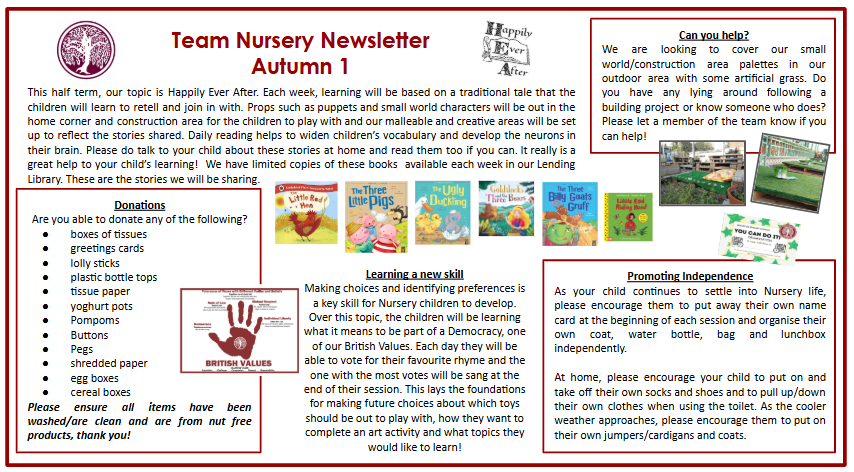 The children in Nursery are all involved in choosing the half termly topics. We discuss our interests and share our views as a collective group and then use the British value of democracy to vote for the final theme. Staff then use the children's interests to plan and deliver exciting and targeted learning opportunities across the half-term. Each topic begins with an exciting launch and concludes with a finale.