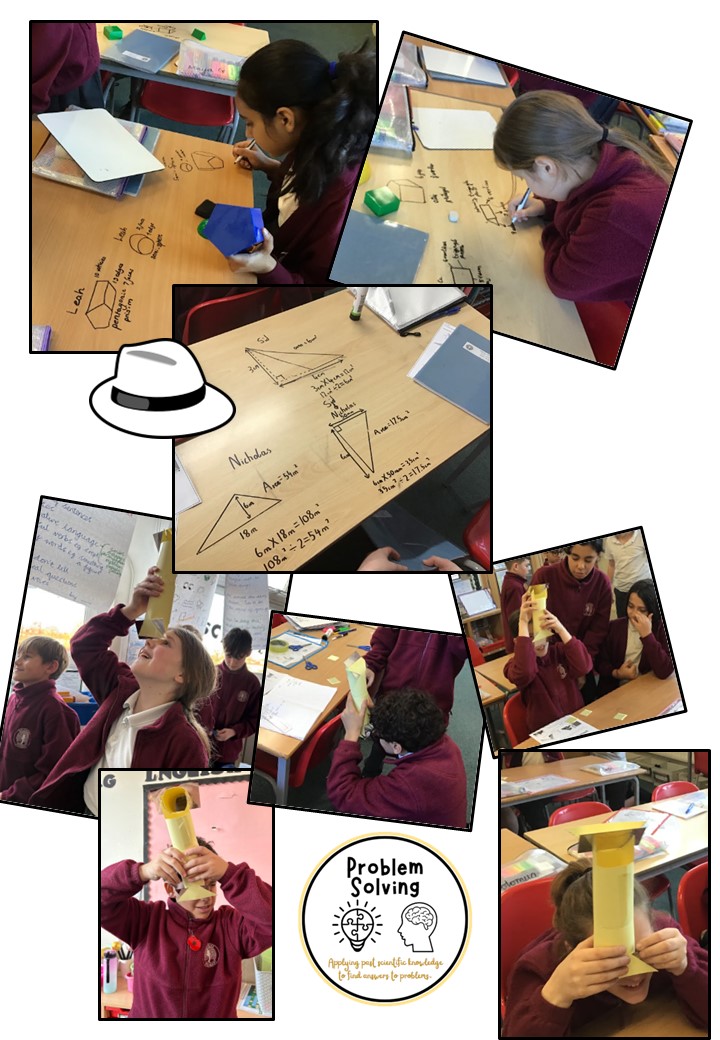 As mathematicians, we looked at properties of 3D shapes and have also been looking at the area of parallelograms and triangles. Using our white hats and problem solving science lens, we created our own periscopes to demonstrate light travelling in straight lines.
